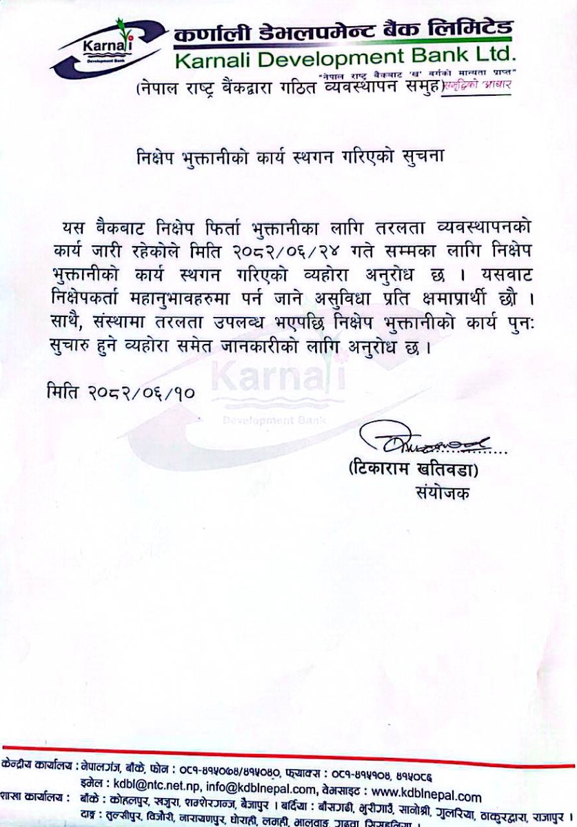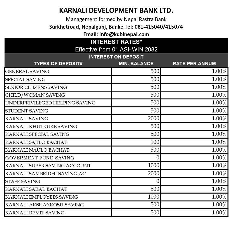 Karnali Development Bank Limited is the first Development Bank in Mid & Far Western Region of Nepal, established on Falgun 6, 2060 under Bank Act 2052 BS. KDBL was incorporated with the objective of extending banking approach to rural and urban developing sectors of the society....